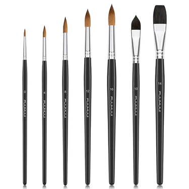 Fuumuui 7pcs Professional Watercolor Brushes - Round Pointed, Flat and Cat's Tongue