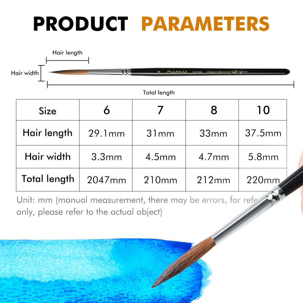 Crafted from the finest Kolinsky Sable hair, these premium brushes embody the gold standard in watercolor tools. Known for their exceptional snap, responsiveness, and pigment release, Kolinsky brushes provide unparalleled precision, making them ideal for both intricate details and bold, expressive strokes.