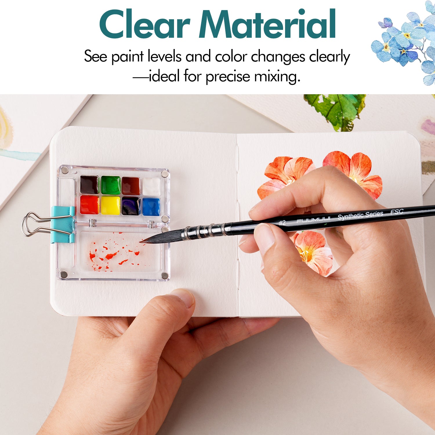 This compact and elegant mini watercolor palette is designed for artists who love to paint anytime, anywhere. Crafted from high-quality acrylic, it features a durable and lightweight build with a smooth surface that’s both easy to clean and pleasing to the eye. Measuring just 6 × 6 cm (2.36 × 2.36 inches), the palette is smaller than the palm of your hand, making it incredibly portable and convenient. You can easily tuck it into your pocket, backpack, or art pouch—perfect for outdoor sketching, travel journaling, café painting, or spontaneous moments of inspiration on the go.