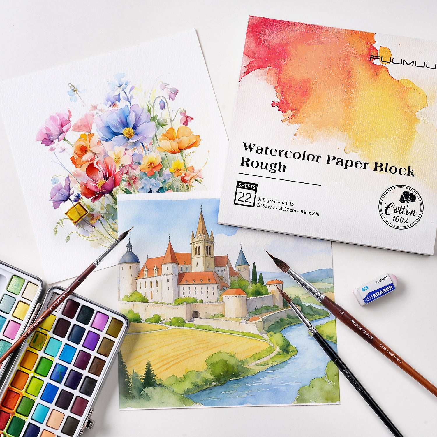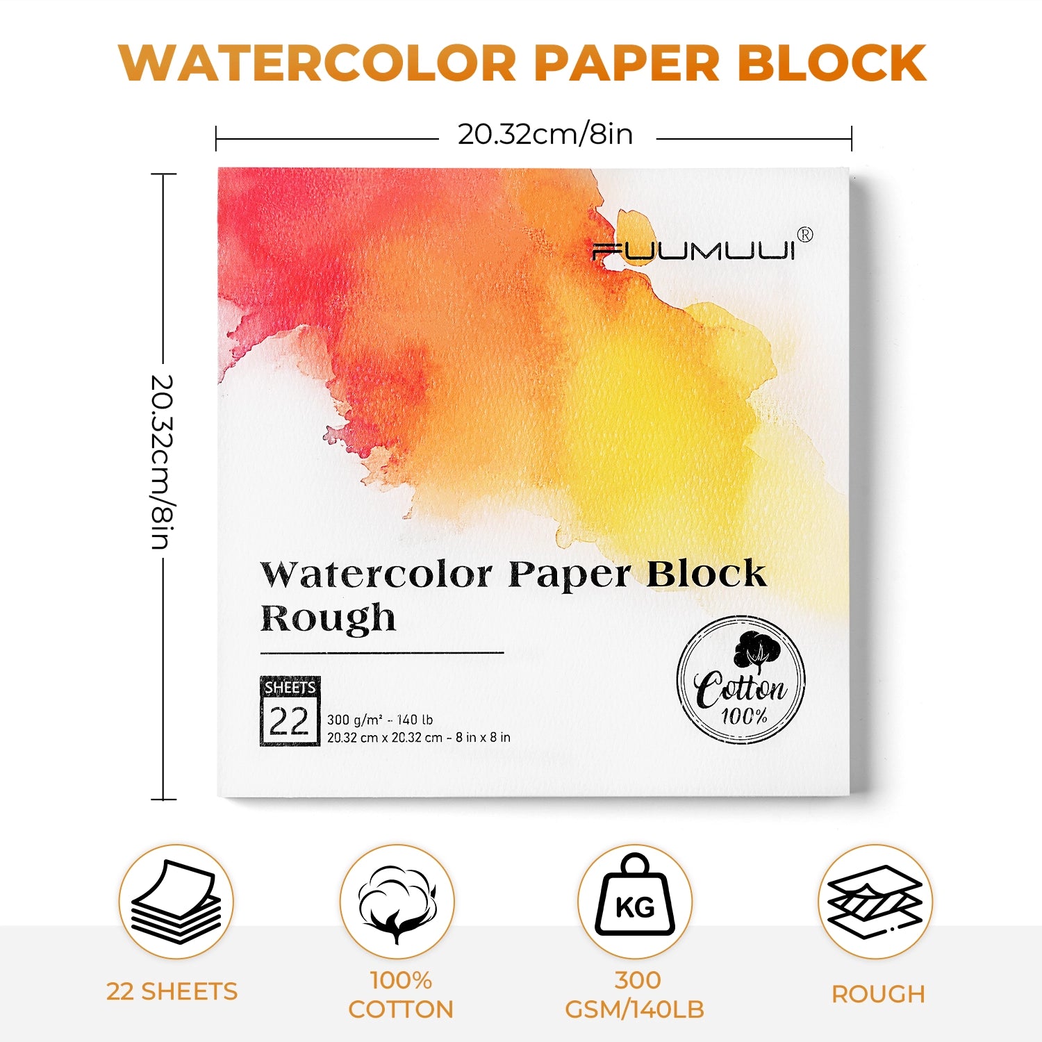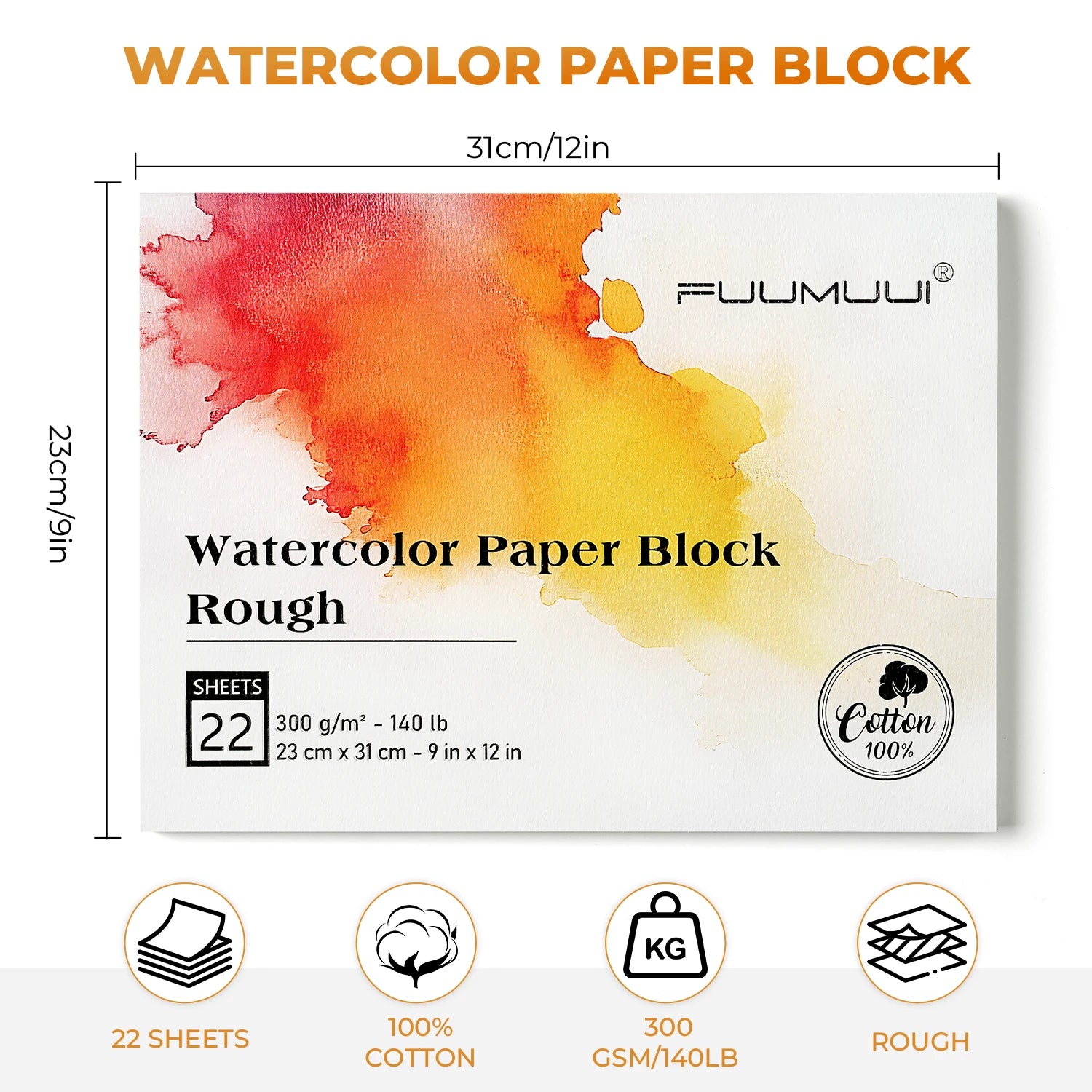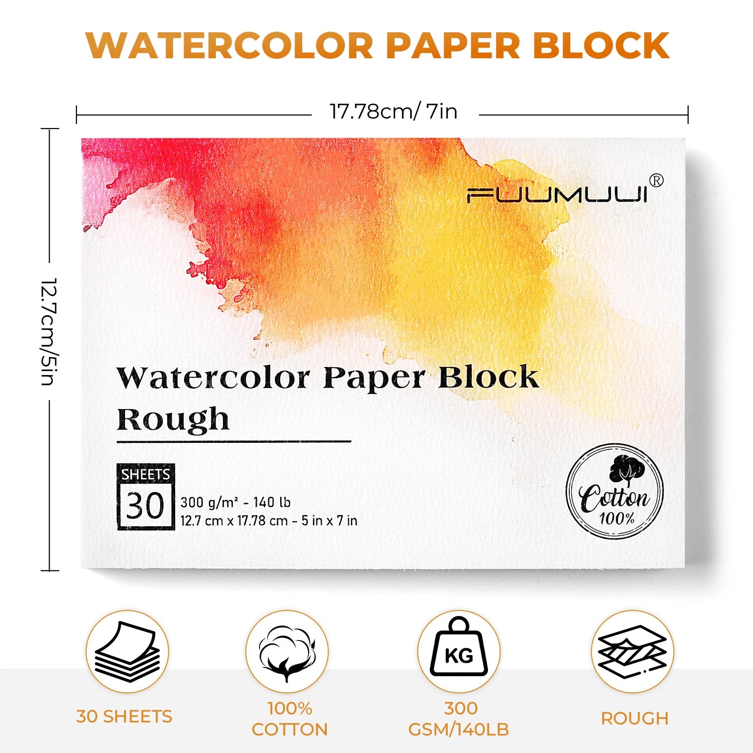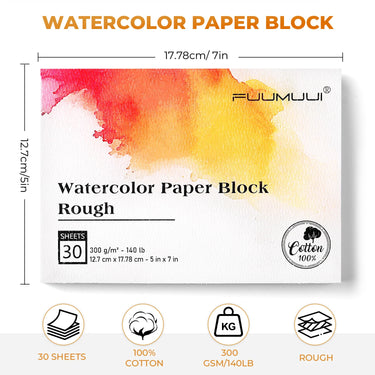 Fuumuui 100% Cotton Watercolor Paper Block - Rough Texture & Cold Press