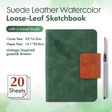 Fuumuui Suede Leather Watercolor Loose-Leaf Sketchbook with A Round Travel Brush