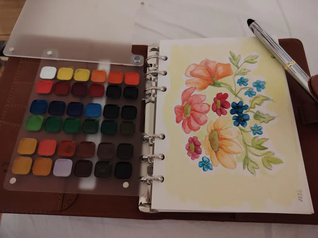 Conjunto de viagem para aguarela Fuumuui – Pincel de viagem de ponta dupla, tintas e papel 100% algodão com capa em pele PU (Grande)